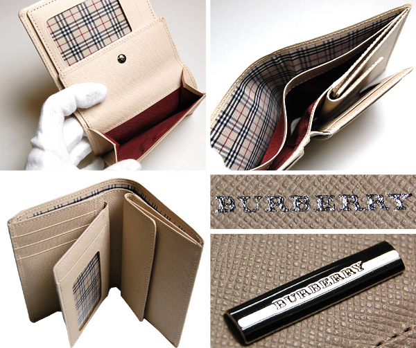 ベージュ型押しパスケース付き二つ折り財布