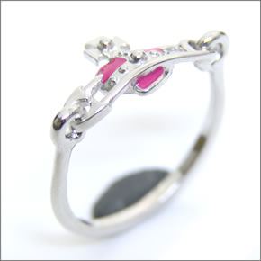 ヴィヴィアン ウェストウッド ハート セーフティー ピン リング シルバー ピンク M(約13号) 138227
