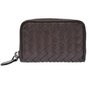 ボッテガヴェネタ イントレチャート ラウンドファスナー 小銭入れ コインケース ラム革 ダークブラウン 114075-V001N 2040