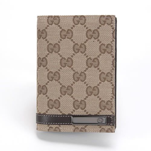 グッチ オリジナルGG GGロゴメタルバー メンズ 二つ折り財布 小銭入れ無し ベージュ/ココア 233114 FAFXR 9643